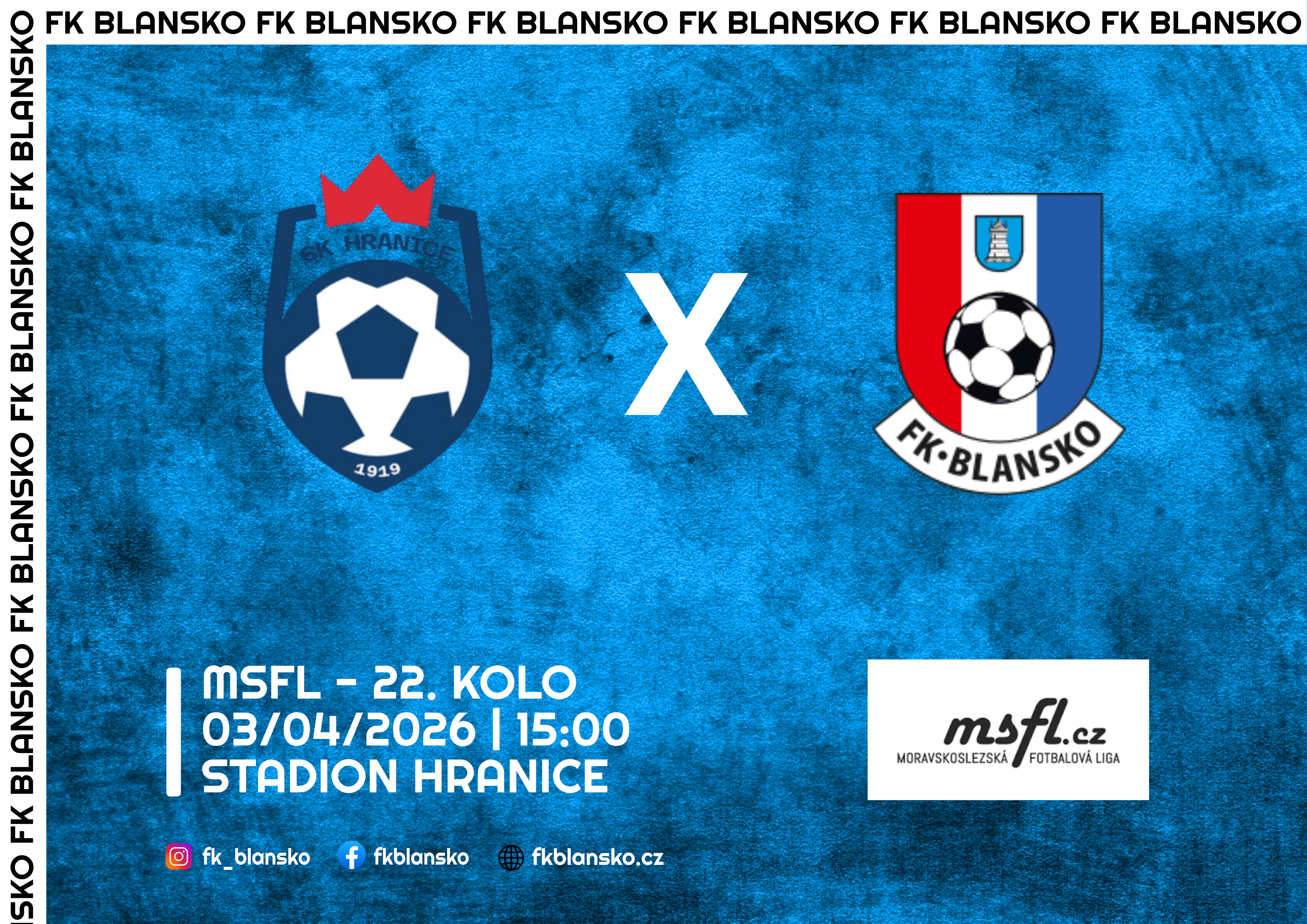 Na poslední vzájemné měření sil by blanenští fotbalisté nejraději zapomněli. Utkání se pro Blansko vyvíjelo skvěle, když skóre otevřel z penalty Smrčka a na 2:0 zvyšoval v 76. minutě Šmerda. Hranice ale udeřili v 78. a 87. minutě po dvou standardních situacích a zápas tak nakonec skončil remízou 2:2. Blansko nemá s Hranicemi dobrou bilanci. Z celkových 5 vzájemných duelů zvítězilo pouze jednou, dvakrát skončil zápas nerozhodně a dvakrát zvítězily Hranice. Bylo by skvělé, kdyby svěřenci kouče Kuglera dokázali tuto nepříznivou bilanci zlomit.