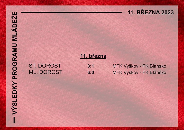 Starší dorost v zápase doplatil na individuální chyby a značnou nervozitu v prvním poločase. Soupeř hrál jednoduchý fotbal, se spoustou osobních soubojů, které na malém hřišti byly místy na hraně pravidel. V sedmé minutě využili hosté skrumáže v naší šestnáctce a po naší vlastní brance se dostali do vedení. Naši hráči poté spálili dvě vyložené šance, kdy po střele Ondry Farníka zvonily obě tyče, druhou tutovku spálil Dominik Zouhar. V 19 minutě ztratil míč na středu hřiště Dujka a domácí z rychlého protiútoku zvýšili na 2:0. Ve druhé půli se obraz hry rapidně změnil, naši hráči odhodili nervozitu a uzamkl soupeře na jeho polovině. V 60 minutě po centru ze strany uklidil míč do sítě Palacký a soupeř v tu chvíli nevěděl, co dělat. Bohužel s ojedinělé střely, která byla tečovaná za záda našeho brankaře, nám soupeř znovu odskočil na rozdíl dvou branek. Naši hráči si tak přes zlepšený výkon neodváží z Vyškova ani bod.