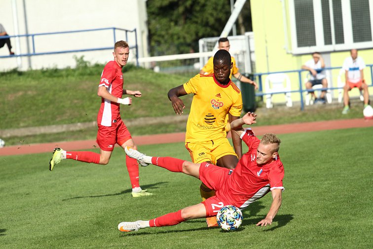 Blansko při historicky prvním domácím zápase ve FORTUNA:NÁRODNÍ LIZE čekal hodně těžký soupeř. Pražská Dukla začala aktivně už v úvodu zápasu a po pěti minutách hry mohl otevřít skóre Buchvaldek, křižný pokus zpoza vápna ale nasměroval kousek vedle branky. Na druhé straně zahrozil jako první domácí Vasiljev, který se prodral do šestnáctky, ránu levačkou ale na poslední chvíli zablokovala obrana hostů. Ve dvacáté minutě už Pražané byli hodně blízko vedení. Aktivní Buchvaldek těžil z presinku Doumbiu, který mu míč sklepl patičkou, prudký pokus hostujícího záložníka ale jen orazítkoval levou tyč.