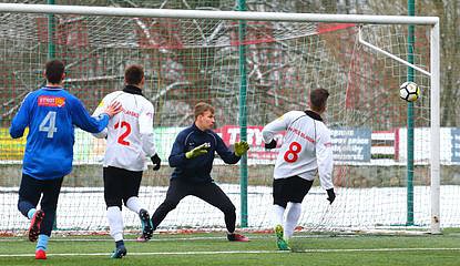 Do vedení šli domácí, kdy se po skrumáži nejlépe zorientoval Černý - 1:0. V 17. minutě Petřík předložil přesný míč Kratochvílovi, ale ten nedokázal 100% šanci využít. V 31. minutě domácí nastřelili tyč Záleského branky. Vyrovnání přišlo za dvě minuty, kdy Kratochvíl zahrál bezvadně přímý kop, který našel ve vápně Šplíchala, jenž svou šanci bezpečně proměnil - 1:1. V 37. minutě se prosadil hbitý Petřík, jenž zvýšil na 1:2. O minutu později po zaváhání obrany i našeho brankáře vyrovnává Novák na 2:2. 42. minuta nabídla krásnou akci z pravé strany blanenského týmu, kdy Šmerda předložil bezvadný míč Chloupkovi a ten zvýšil na 2:3. Minutu před poločasem přichází asi nejhezčí akce hostů. Z hloubky pole se na jeden kontakt přes Bártu, Bokůvku, Kratochvíla a Dvořáka dostal míč opět k Chloupkovi a ten bezpečně proměnil - 2:4.