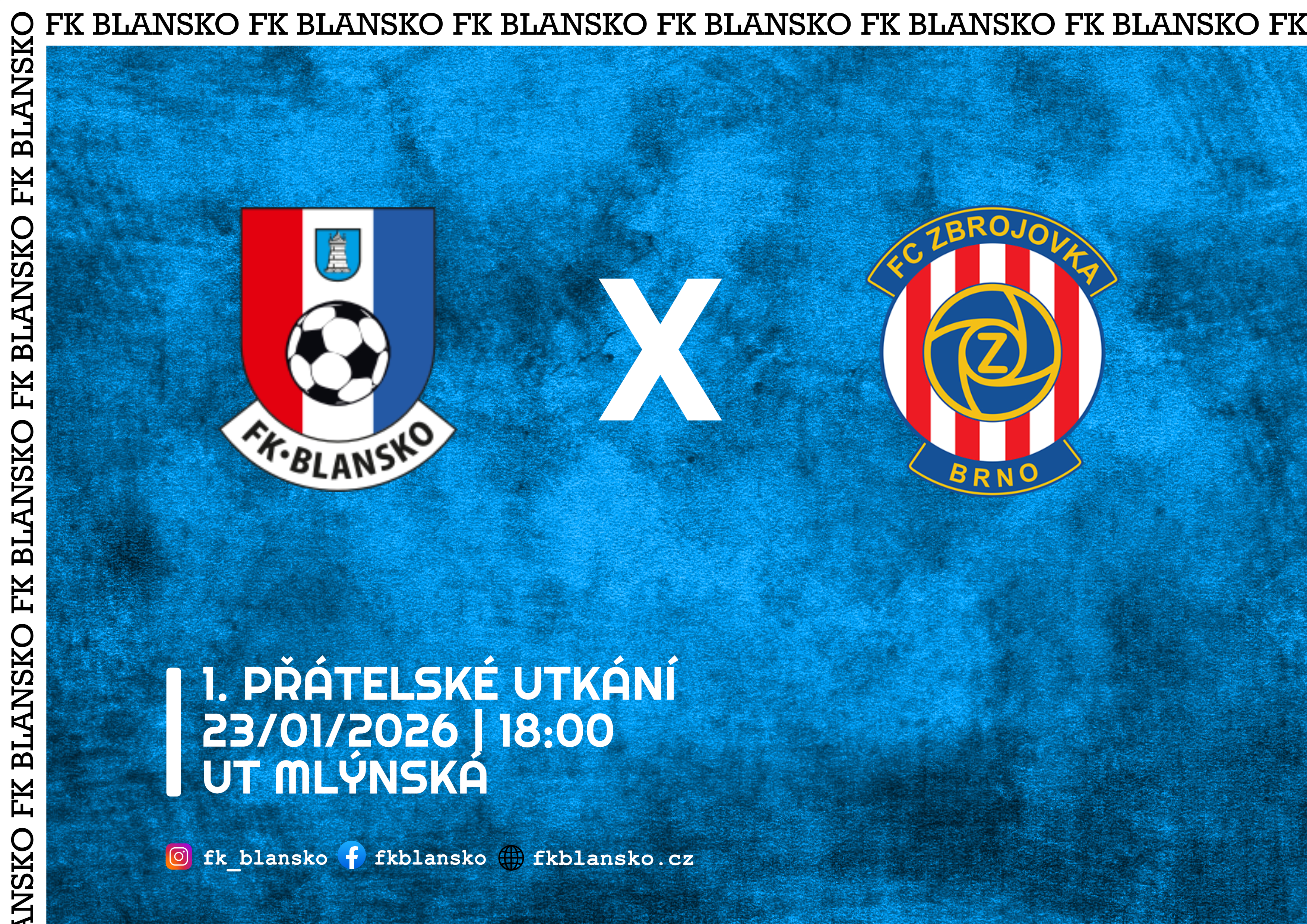 Zimní příprava je v plném proudu a na blanenské fotbalisty čeká v pátek první přátelské utkání. Svěřenci kouče Kuglera vyzvou na domácí půdě juniorku Zbrojovky Brno. Brňané zažili skvělou podzimní část a v MSFL přezimují na 4. místě tabulky. Během zimy tým pod vedením Marka Zúbka stihl odehrát už 2 zápasy. Nejprve Zbrojovka zvítězila vysoko 4:0 nad B-týmem Artisu, v následujícím duelu podlehla po přestřelce 3:5 polskému Górniku Zabrze II. Utkání na Mlýnské startuje oproti původnímu plánu už v 18:00!
