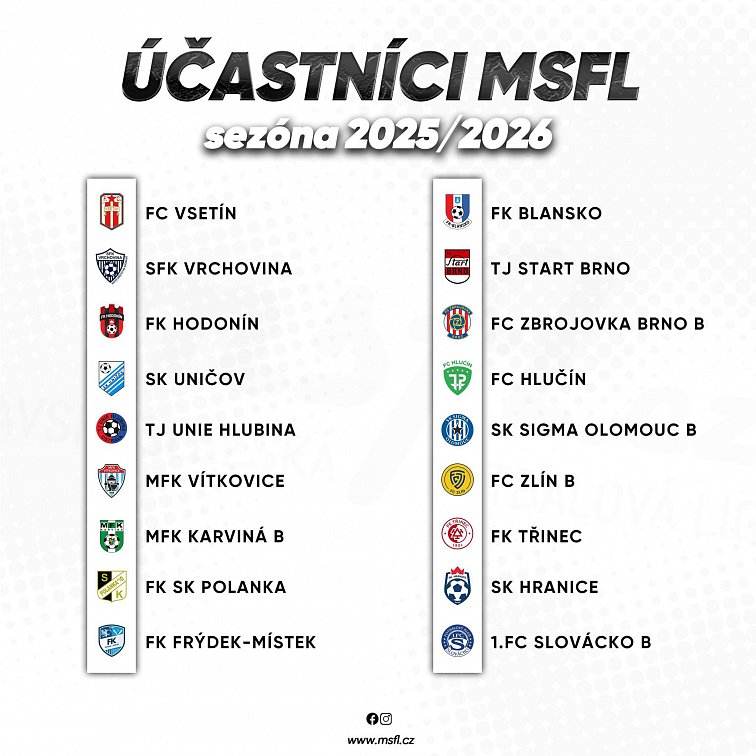 Nový ročník MSFL s sebou přinese také 6 nováčků. Postupujícími celky ze 4. ligy jsou Vrchovina, Vsetín, Hranice, Polanka nad Odrou a Vítkovice. Po sestupu z 2. ligy se do MSFL po třech letech vrací Sigma Olomouc B.