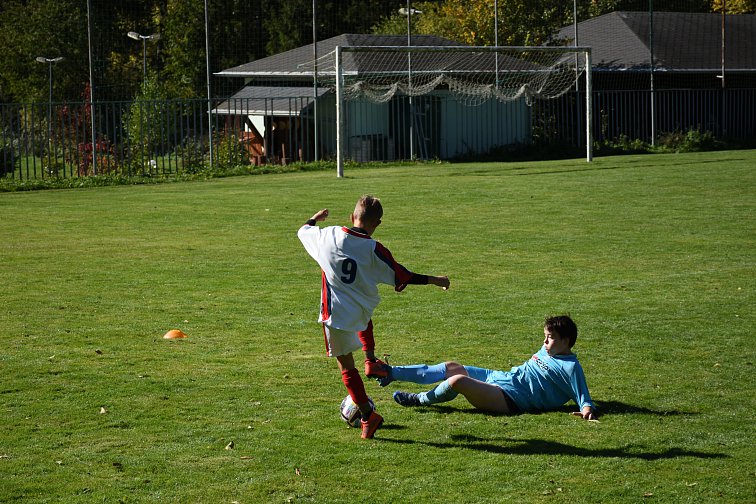 Vzhledem k tomu, že měl náš B tým o víkendu pauzu, nominovali jsme do zápasu hned 16 našich borců. Věděli jsme, že náš soupeř je jedním z nejlepších týmů v naší soutěži. Kluci se ale nezalekli a hned ze startu jsme pořádně zatopili hostujícímu týmu v podobě krásné přízemní střely Honzy Kopky. Nechytatelná bomba rozvlnila síť - 1:0. A to nebylo vše, když ve 4. minutě napřáhl svou "levačku" a krásnou střelou propálil hostujícího gólmana náš kanonýr Filip Slouka - 2:0! Ze studené sprchy se soupeř začal oklepávat a začal si vytvářet brankové příležitosti. Připraveného gólmana Lukáše Petříčka však nepřekonal. Vyrovnanou hru s řadami šancí na obou stranách ukončil hvizd rozhodčího v prvním poločase. V tom druhém, se dostával zejména soupeř svými akcemi před naši svatyni. Narůstající tlak již zúročil v podobě gólu ve 42. min a snížil stav bojovného utkání na 2:1. A to nebylo vše, když stejný hráč Filip Šeptun udeřil i ve 46. minutě a hosté se mohli radovat z vyrovnávacího gólu - 2:2. Otěže utkání následně přebral náš kvalitní soupeř, který vévodí v naší tabulce. Řadu šancí vychytal Míša Zouhar, který do druhého poločasu (plánovaně) vystřídal v bráně Lukáše Petříčka. Paradoxně jsme to byli my, kdo mohl v samotném závěru rozhodnout výsledek utkání v náš prospěch, když Lukáš Petříček proklouzl až před hostující bránu, ale jeho následná střela postrádala razanci. Kluci svým přístupem a odhodláním dotáhli zápas k remíze a opět se přesvědčili, že se dá hrát s každým týmem. Opět děkujeme rodičům i fanouškům za jejich podporu a věříme, že si příště zazpíváme "Vysoký jalovec"!
