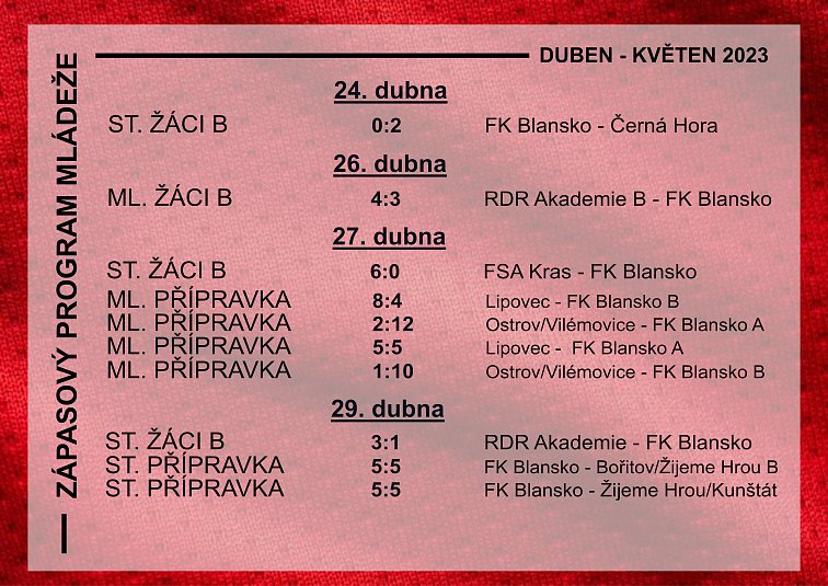 3. 5. 2023 jsme vyrazili sehrát přátelské utkání do Lipovce. Na místě nás čekalo chladné počasí. Za Blansko nastoupilo celkem 18 hráčů a za Lipovec 8. Vzhledem k velkému počtu hráčů z Blanska jsme se s trenéry dohodli, že sestavíme týmy ve formátu 4+1 a budeme hrát na dvou hřištích. Hrálo se s velkým zápalem a o branky nebyla nouze. Musím pochválit soupeře, který i s malým počtem hráčů vydržel hrát celkem 90 minut. V následujících dnech nás čeká utkání s přípravkou FK Blansko a v Líšni.