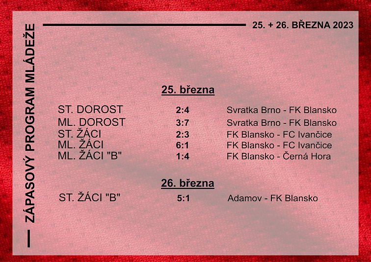 Naši starší dorostenci nastoupili k zápasu se Svratkou velice uvolněně a od první minuty bylo na hřišti jen jedno mužstvo, náš tým hrál velice uvolněně a s chutí. Díky skvělé aktivitě pohybu bez míče a výběru místa jsme si vytvořili velký tlak, který vyústil v pokutový kop. Ten proměnil Málek, další dvě branky přidal velice aktivní Zouhar a na poločasových 0:4 zvýšil opět Málek. Do druhé půle naši hráči nastoupili možná až moc uspokojení výsledkem a hráči domácích si i přes vyloučení dokázali vytvořit tlak a vstřelit branku. Tento moment byl zlomový pro další vývoj zápasu, najednou jsme se báli hrát, nedodržovali jsme věci, díky kterým naši hráči ovládli první poločas. Je velká škoda, že jsme soupeře pustili do zápasu, místo toho abychom si zápas herně pohlídali. V 68 minutě po nedorozumění naší defenzivy fauloval náš brankář útočníka soupeře a obdržel červenou kartu. Do branky musel teprve 14 letý František Tenora, který hned čelil pokutovému kopu. Soupeř svou šanci neproměnil a tak se stále hrálo nahoru dolů. Podobu konečnému výsledku dal i přes naše šance domácí útoční. Ze Svratky odjíždíme s důležitými třemi body, ale zároveň i s velkým zamyšlením. Hráči vědí, že málo chválím, ale dnes udělám změnu a pochválím je za první poločas, chtěl bych vyzdvihnout i výkon jednotlivce a to Matěje Ščučky, který za tento zápas zaslouží absolutorium a obrovský respekt.