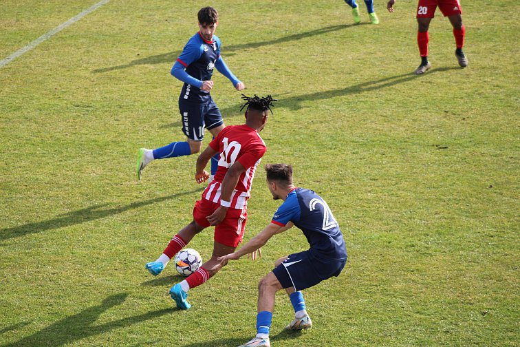 V prvním poločase jsme mohli vidět několik šancí na obou stranách. Na straně Blanska to několikrát dobře zkoušel Sedlák a Crozon. Nejvíce nebezpečná byla šance hostů, když břevno nastřelil Charles, ale ani on nedokázal změnit skóre zápasu. Oba týmy tak jdou do šatny za nerozhodného stavu 0:0.