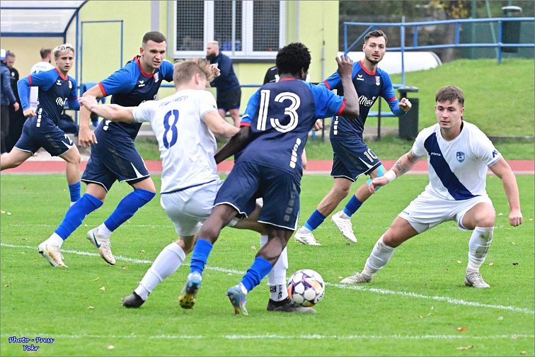 V 70. minutě střílel těsně nad břevno Němec. V 75. minutě se poprvé měnilo skóre. Krapa byl mezi třemi bránícími hráči faulován a byla z toho penalta. Tu bezpečně proměnil Štěpán Kolařík – 1:0. Blansko si hlídalo vedení, pak ovšem přišel závěr zápasu, který se jen tak nevidí. V páté nastavené minutě rozhodčí Rosický odpískal sporný faul a hosté měli k dispozici standardní situaci. Míče se ve vápně zmocnil Hykel, který na malém vápně našel Kohuta a ten už neměl problém poslat míč do sítě – 1:1.