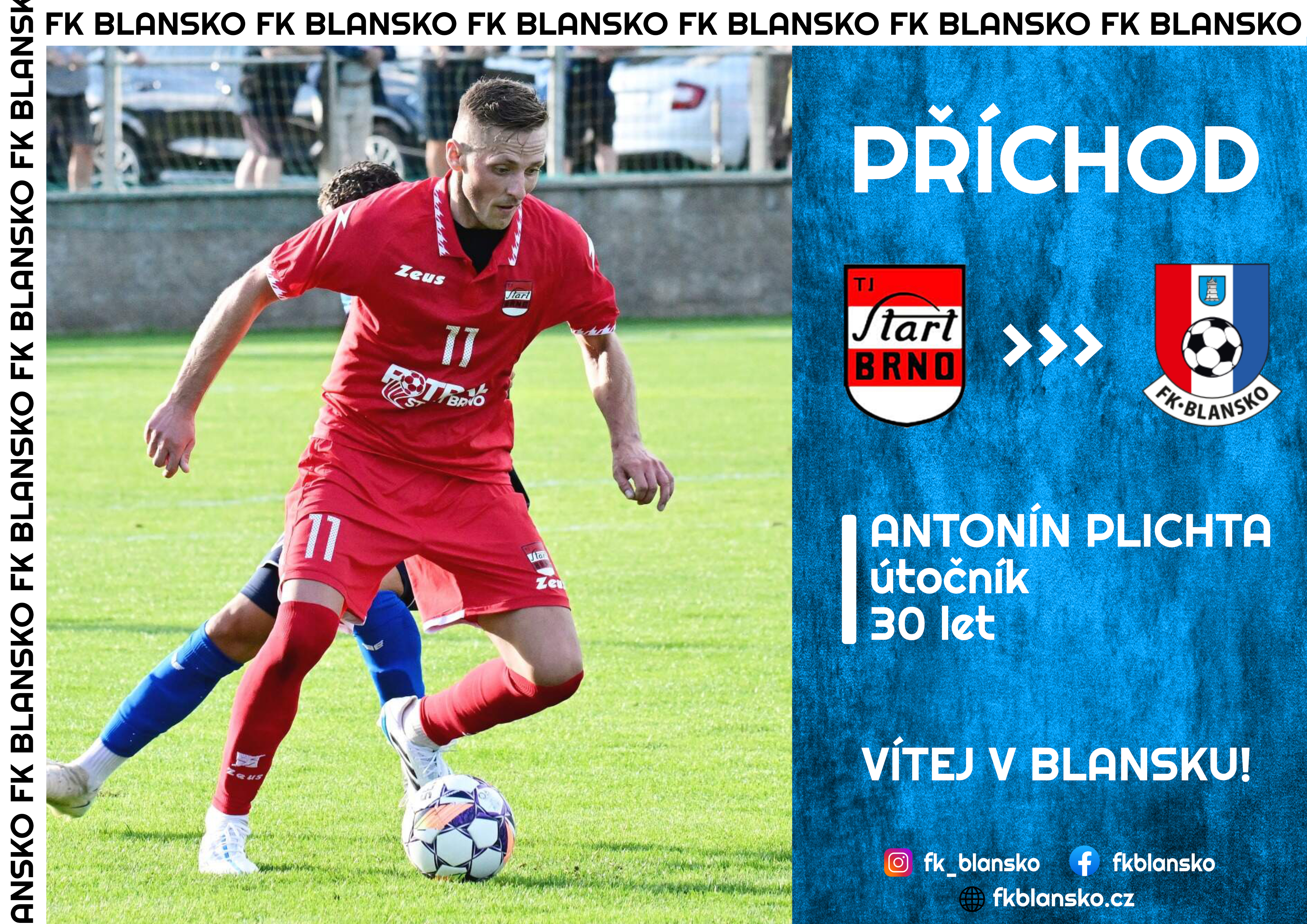 Blanenský klub pokračuje v posilování kádru a přivádí do svých řad střelce Antonína Plichtu. Třicetiletý forvard má se 3. ligou bohaté zkušenosti, když v této soutěži nastoupil ke 133 zápasům a vstřelil 55 branek. Jeho poslední štací byl brněnský Start, v jehož dresu na podzim nasázel 6 branek. V minulosti působil také ve Velkém Meziříčí nebo ve Staré Říši. Po konci profesionální smlouvy ve Startu Brno se stává kmenovým hráčem FK Blansko. Ať se Ti v Blansku daří, Tondo!