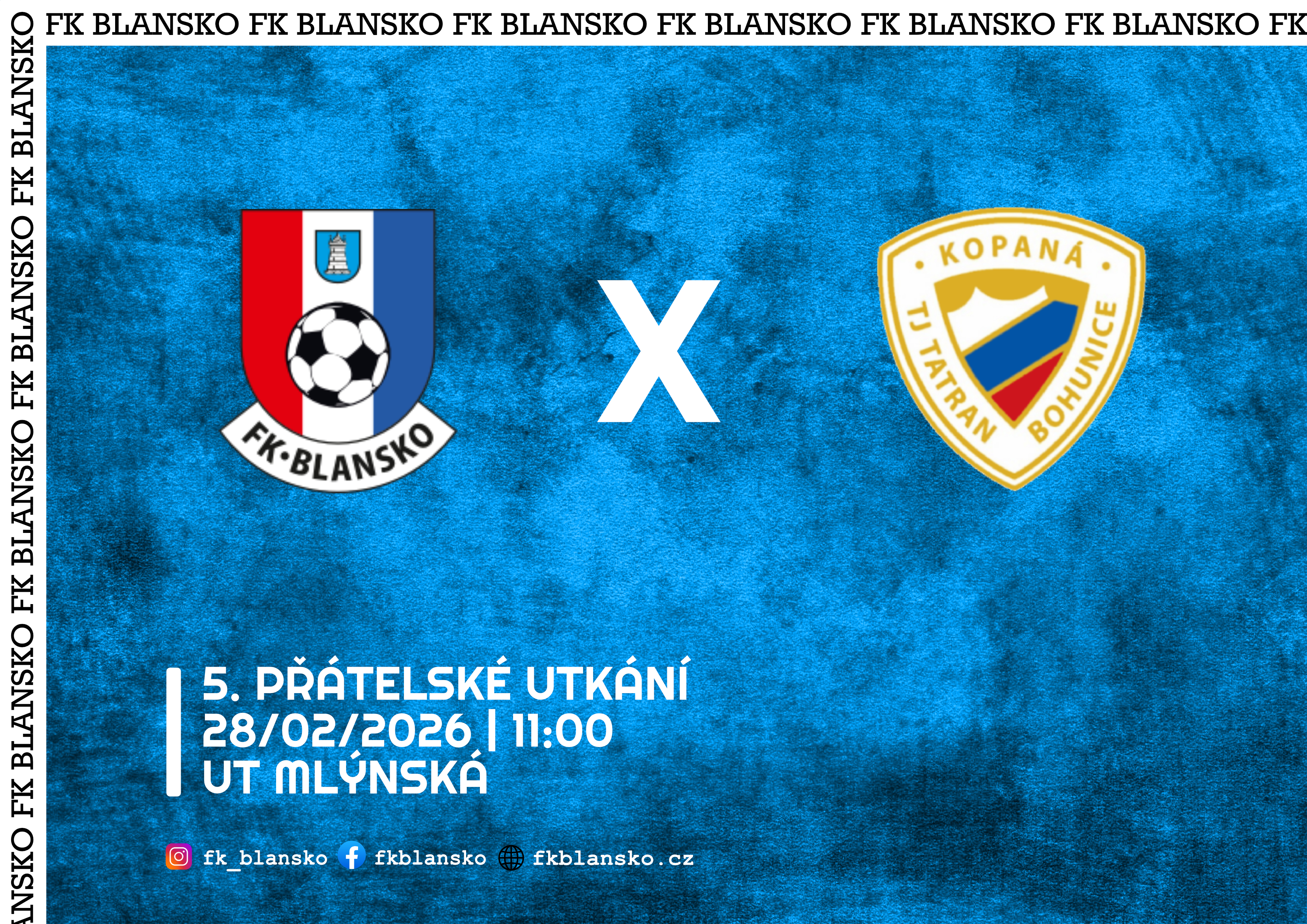 Příprava blanenských fotbalistů je téměř u konce. Svěřence kouče Kuglera čeká už zítra generálka na start MSFL, kdy na Mlýnskou zavítá kvalitní mužstvo Bohunic. Bohunicím patří po podzimní části ve 4. lize skupiny D 2. místo v tabulce se ztrátou pouhých dvou bodů na vedoucí Artis B. Tatran se minulý týden utkal s Lanžhotem a zápas skončil nerozhodně 1:1. Pro Bohunice rovněž půjde o generálku před startem soutěže