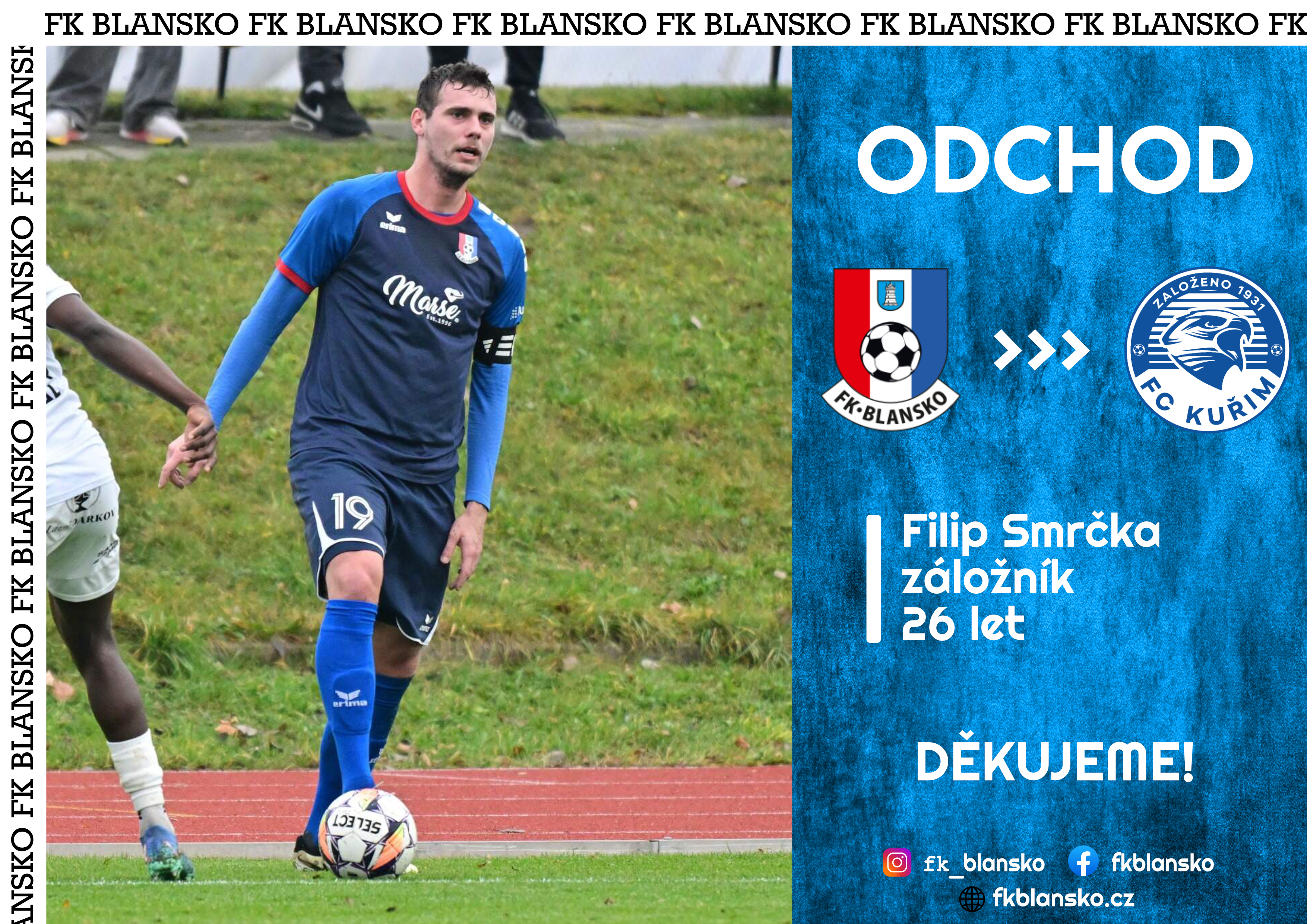 Všem fanouškům blanenského fotbalu bych chtěl moc poděkovat za přízeň a podporu. Doufám, že na fotbal v Blansku si v budoucnu najde cestu větší množství fanoušků. Nemohu opomenout na kluky z uskupení The Blansko Klobása, kteří nás podporují neustále po dobu mého působení v klubu, a to i na venkovních zápasech. Počtem jich sice není mnoho, ale vliv jejich podpory je na hráče nezpochybnitelný. Prakticky je považuji za součást kabiny a budu rád, pokud dostanu šanci jim ještě osobně poděkovat. Všem příznivcům blanenského fotbalu přeji klidné svátky a úspěšný rok 2026!