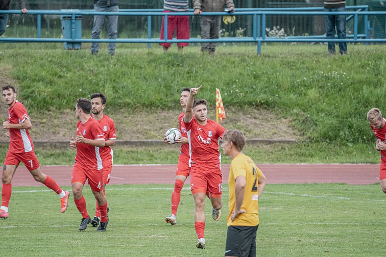 Blansko nemělo vstup do zápasu podle představ. V osmé minutě byl ve vápně trochu tvrději zastaven Přerovský a jeho pád rozhodčí vyhodnotil za penaltový. K pokutovému kopu se postavil sám Dan Přerovský, který poslal míč k levé tyči a jen málo chybělo Nešetřilovi k tomu, aby míč zastavil.